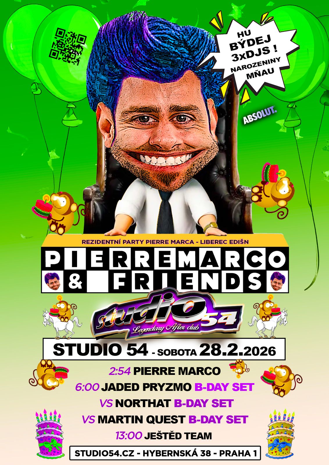 Discover the legend of Prague's After Parties. Over 22 years we bring amazing sound and wonderful atmosphere, which is waiting for you! Finish off your party night in the most renowned Prague's After Club. Studio 54 is open on these days.